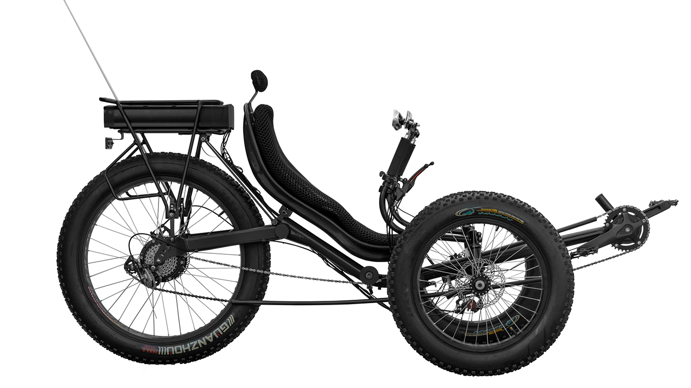 The Daymak Recumbent is back and it just got bigger and better! The all new Daymak Recumbent FT comes with oversized 4-inch tires that give you a smooth ride when on the road, and the traction and stability when you’re off it! But that’s not the only features that got a serious upgrade; the Recumbent FT now comes with a removable 48V lithium ion battery pack, 500W motor and up to 6 levels of pedal assist. Combine that with the 7 speed Shimano shifters you can configure your three wheeled adventure to suit your needs perfectly. This electric recumbent is the bike for anyone with back issues, or just all-around trend setters. Ride in comfort and style and make a statement with the all new Daymak Recumbent FT now available!